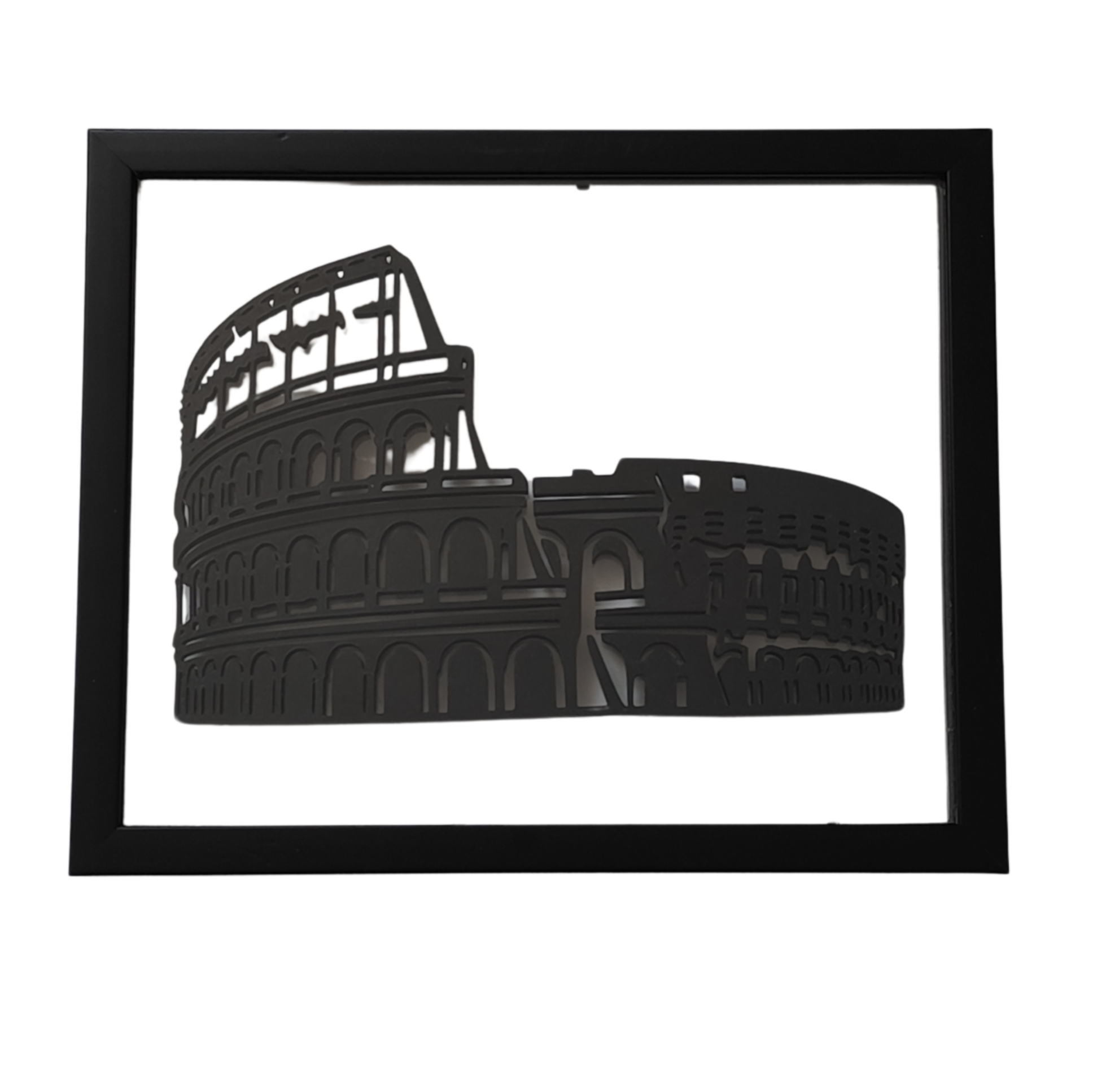 Capture la esencia inmortal de la historia con nuestro exclusivo cuadro del Coliseo Romano. Esta no es una simple lámina; es una obra de arte tridimensional que da vida a la arquitectura más icónica del Imperio Romano. Cada arco, cada nivel y cada detalle del majestuoso anfiteatro han sido recreados en un relieve texturizado que aporta una profundidad y un realismo sorprendentes.