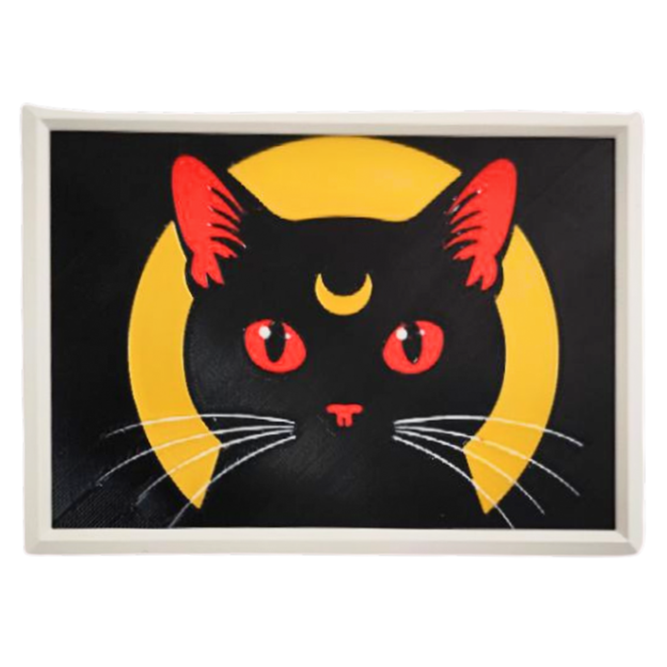 Cuadro decorativo inspirado en el icónico gato lunar de Sailor Moon. Ideal para fans del anime y amantes de los detalles místicos, con un diseño audaz que resalta en cualquier espacio.