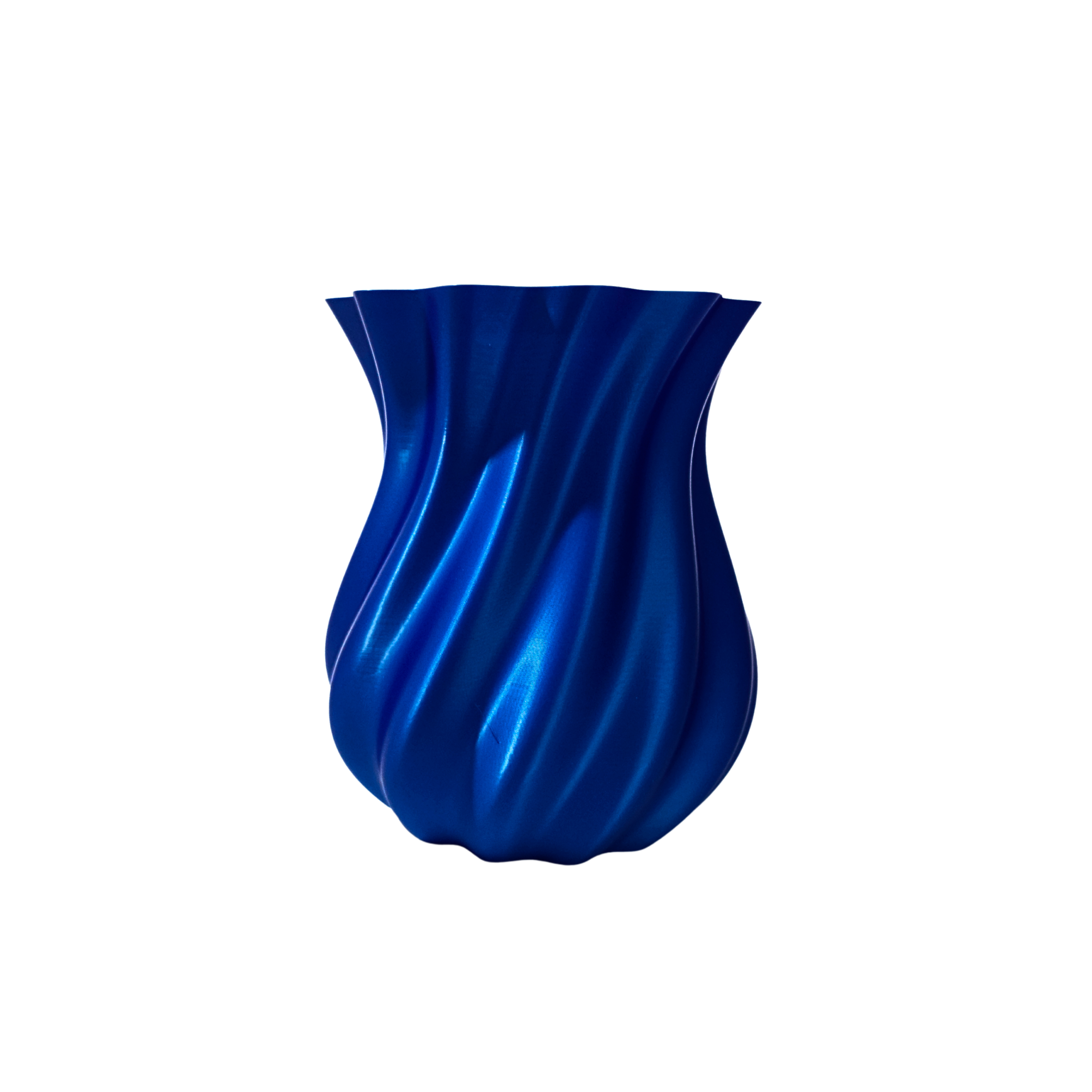 El diseño de esta maceta destaca por sus delicadas texturas en espiral, que dan la impresión de un tejido dinámico y en constante movimiento. Estas ondas suaves capturan y reflejan la luz de una manera sutil, creando un juego de luces y sombras que resalta su color azul profundo. Este acabado metálico y brillante no solo le da un toque moderno, sino que también realza la belleza natural de las plantas que alberga, convirtiendo cualquier espacio en un oasis de calma y sofisticación.