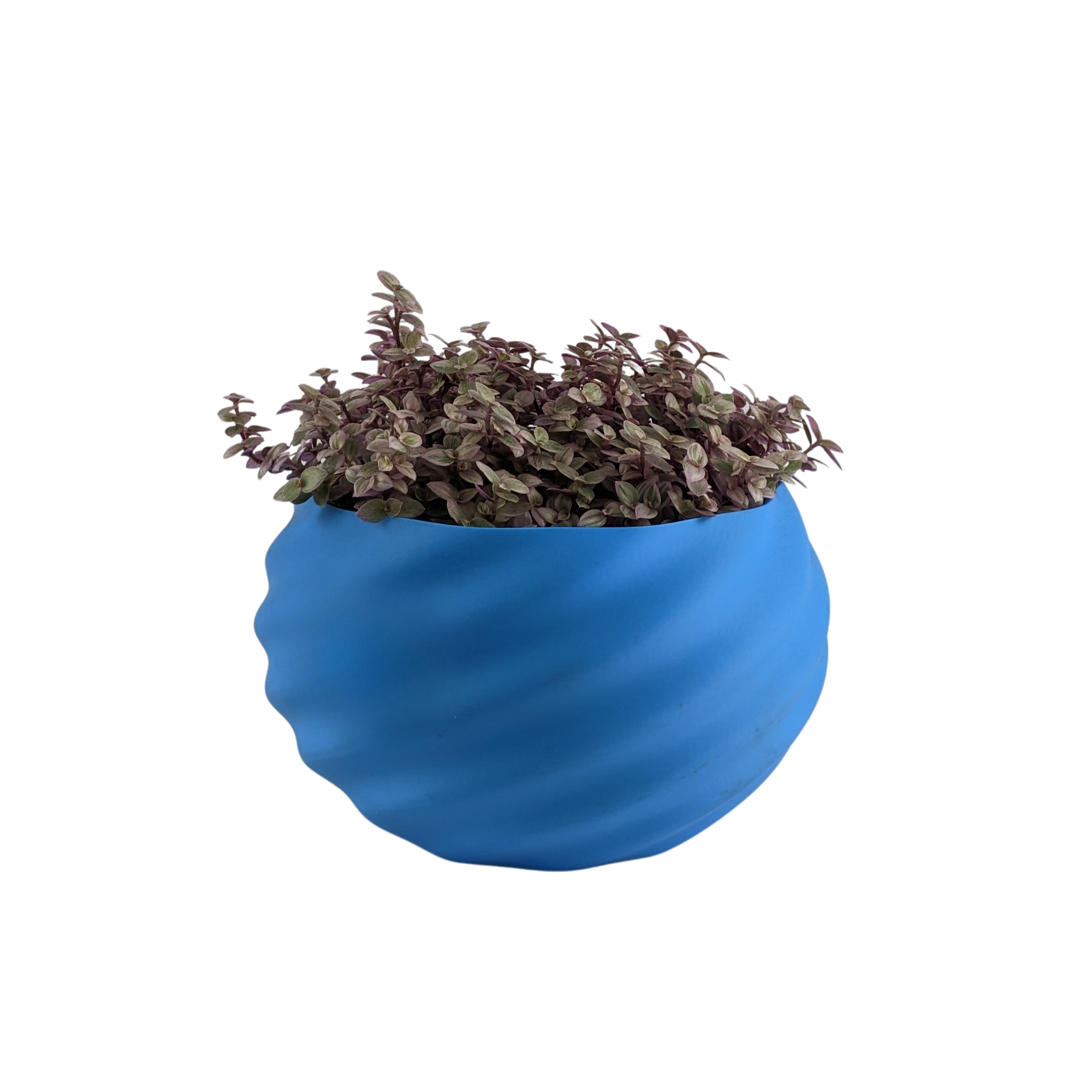 Su diseño principal es una suave espiral que recorre todo el cuerpo de la maceta. Esta textura crea un efecto visual hipnotizante que juega con la luz, proyectando sombras que cambian a lo largo del día. Su forma redondeada y orgánica, similar a un guijarro suavemente pulido por el agua, le da un aire de serenidad y modernidad. El material ligero y resistente permite que puedas moverla fácilmente, lo que la hace perfecta para decorar cualquier rincón que necesite un poco de vida.